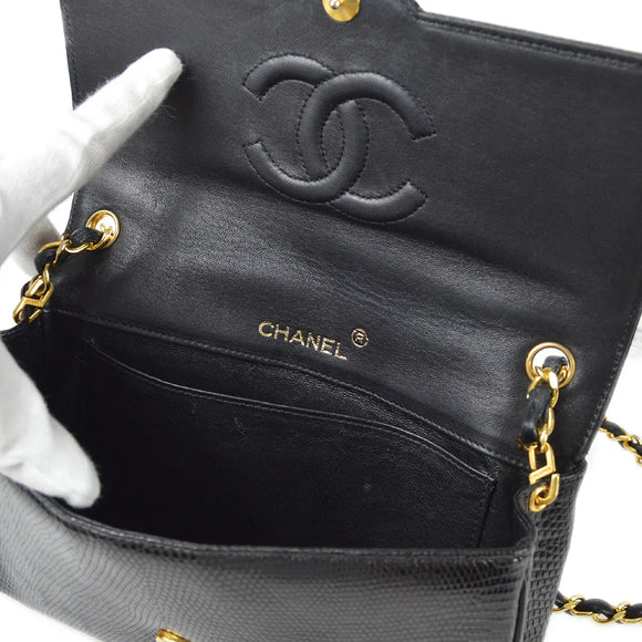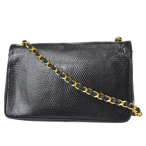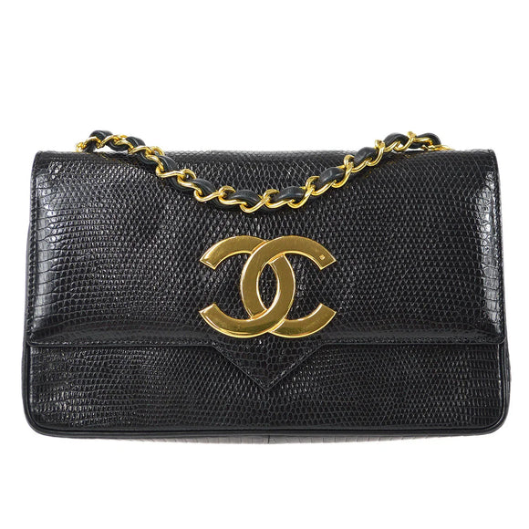| 香奈儿直面皮瓣链肩袋黑色蜥蜴 | |