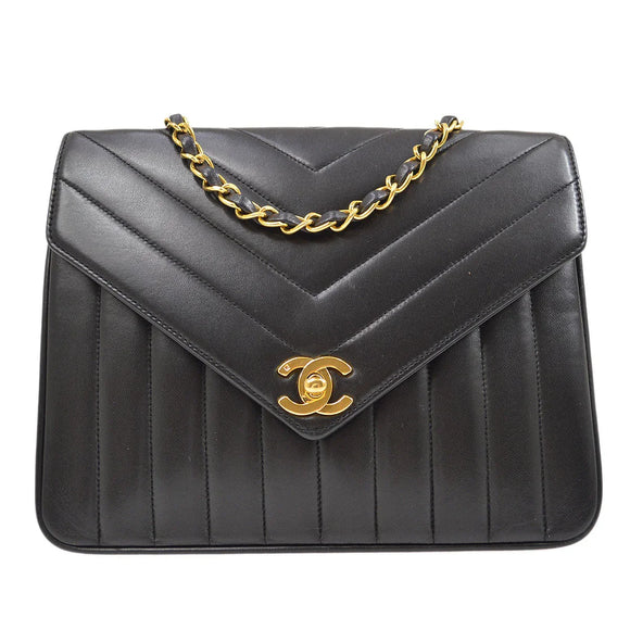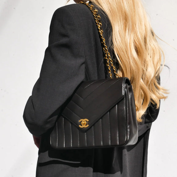 香奈儿v针迹单瓣小肩袋黑色羊皮