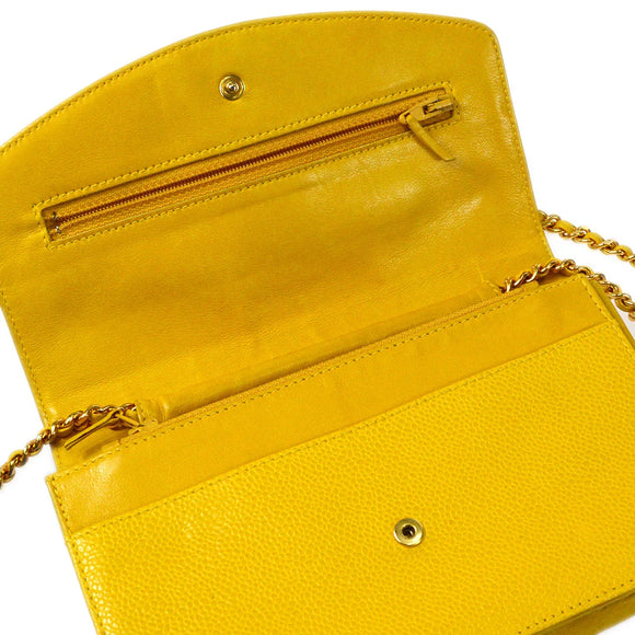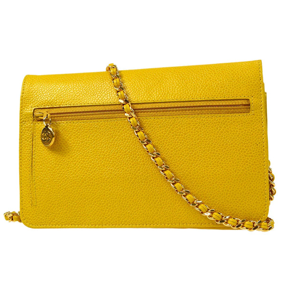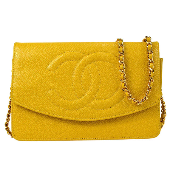 香奈儿WOC链链肩钱包袋黄色鱼子酱