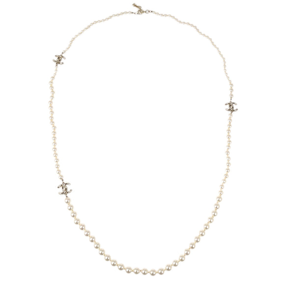 Chanel Gold Chain Artificial Pearl Rhinestone Necklace A15B