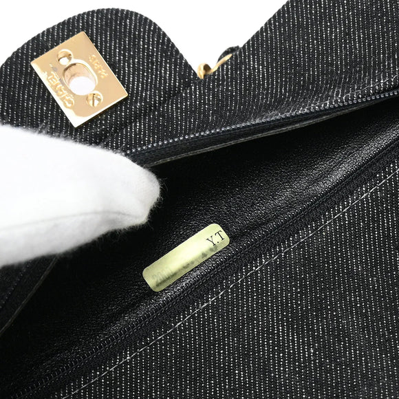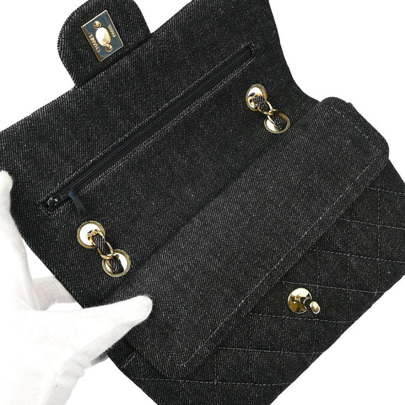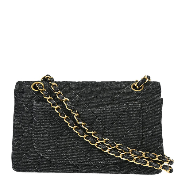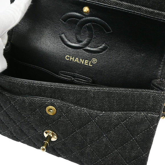 Chanel 1997-1999 Black Denim Small Classic Double Flap Shoulder Bag