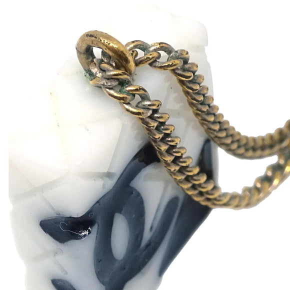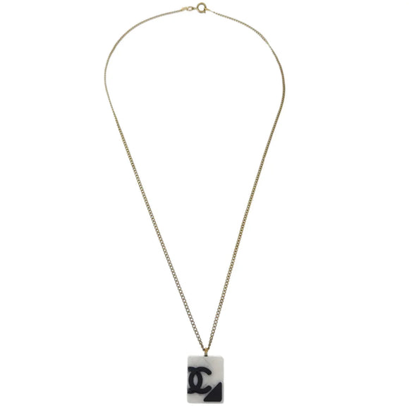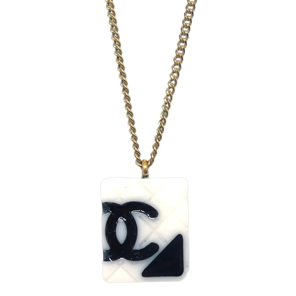 Chanel Cambon Ligne Chain Necklace Pendant Gold White 05C