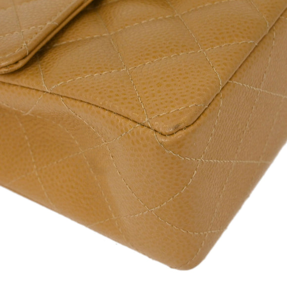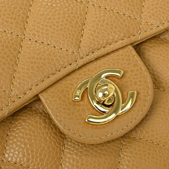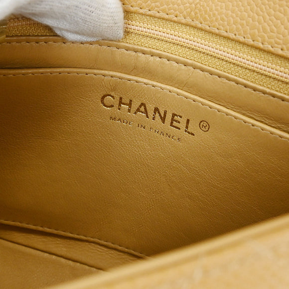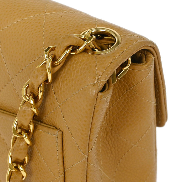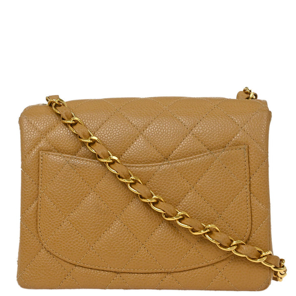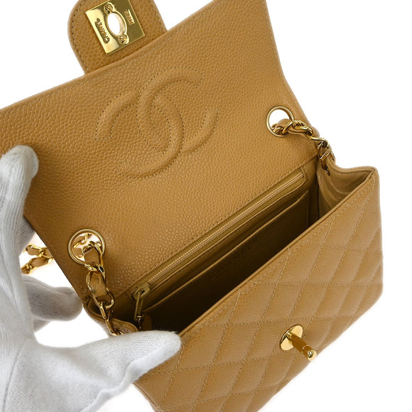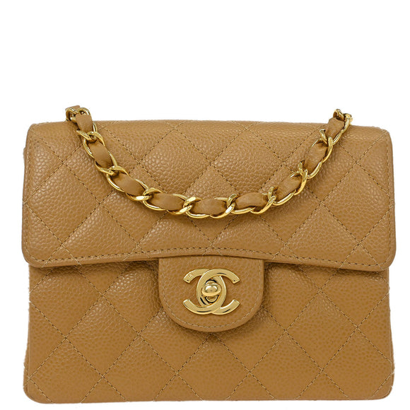 Chanel 2003-2004 Beige Caviar Mini Classic Square Flap Bag