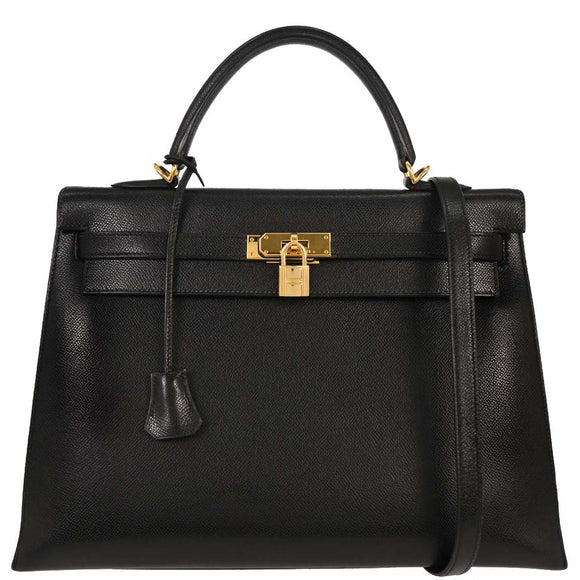 Hermes Black Courchevel Kelly 35 Sellier 2way Shoulder Handbag