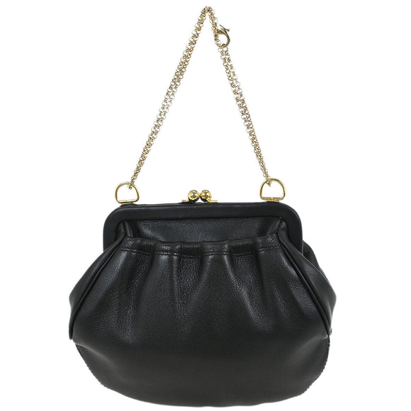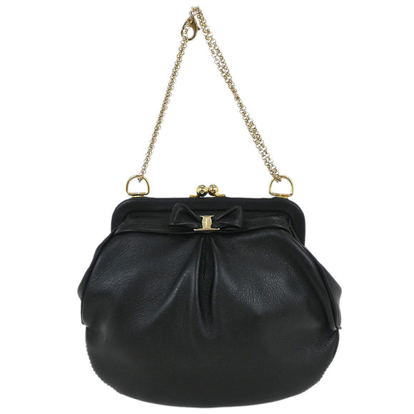 Salvatore Ferragamo Black Leather Kiss Lock Purse Handbag