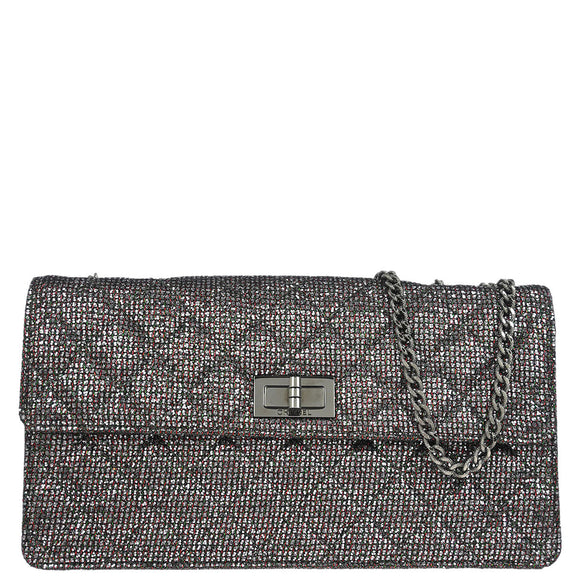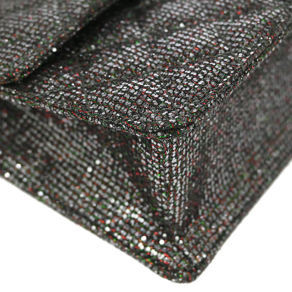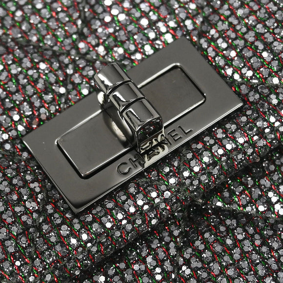 Chanel Silver Mademoiselle Lock Glitter Canvas Shoulder Bag