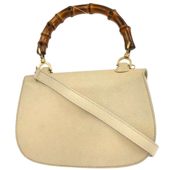 Gucci Light Beige Pigskin Bamboo 2way Handbag