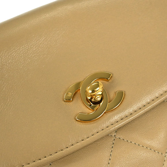 Chanel 1989-1991 Beige Lambskin Single Flap Shoulder Bag
