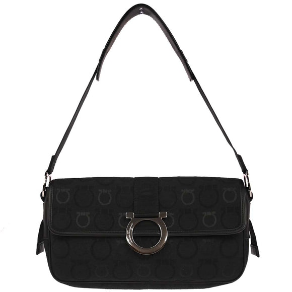 Salvatore Ferragamo Black Canvas Gancini Handbag