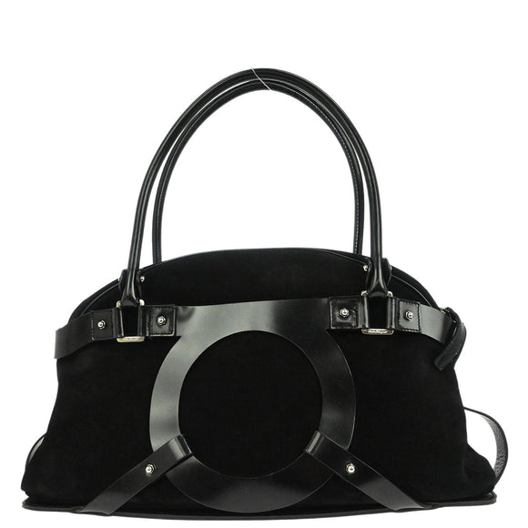 Salvatore Ferragamo Black Suede Gancini Handbag