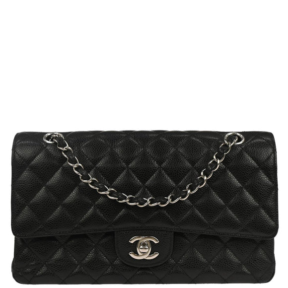 Chanel Black Caviar Skin Medium Classic Double Flap Shoulder Bag