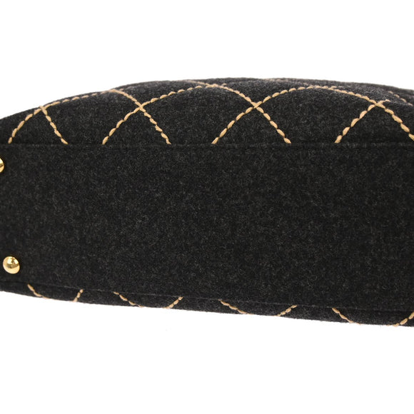 Chanel Gray Wool Wild Stitch Chain Handbag