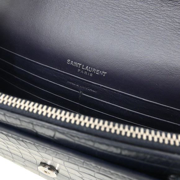 Saint Laurent * Navy Embossed Leather Sunset Handbag