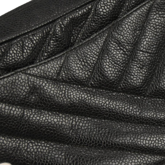 Chanel 1991-1994 Black Caviar Skin Bias Stitch Camera Bag Mini