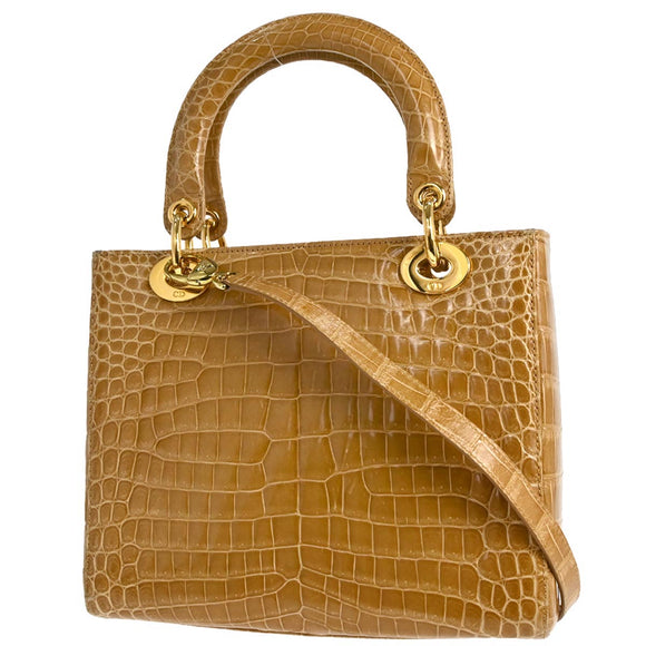Christian Dior * Brown Crocodile Medium Lady Dior 2way Shoulder Handbag