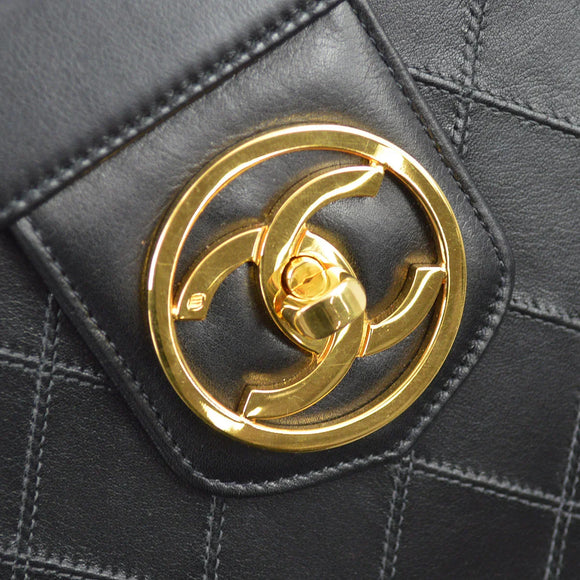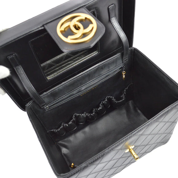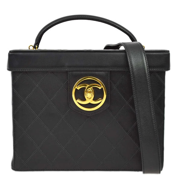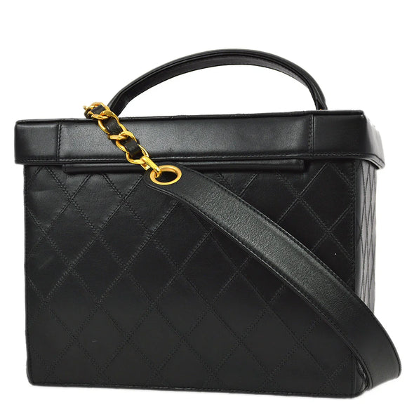Chanel 1994-1996 Black Lambskin Bicolore Vanity 2way Handbag