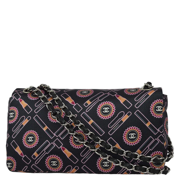 Chanel 2004-2005 Black Satin Lipstick Classic Single Flap Shoulder Bag