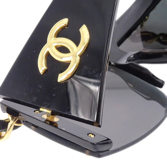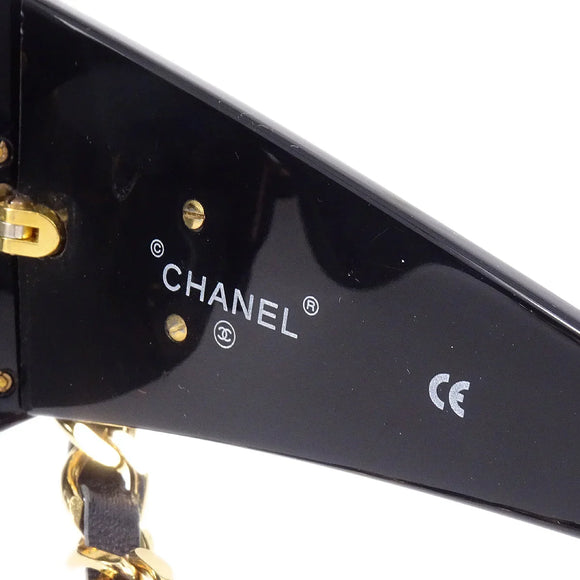 Chanel Chain Sunglasses Eyewear Black Small Good