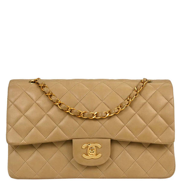 Chanel 1996-1997 Beige Lambskin Medium Classic Double Flap Shoulder Bag