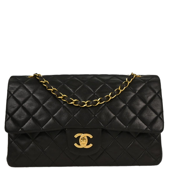 Chanel 1994-1996 Black Lambskin Medium Classic Double Flap Shoulder Bag