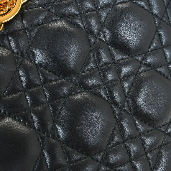Christian Dior Black Lambskin Large Lady Dior Cannage 2way Shoulder Handbag