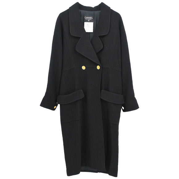 Chanel 2001 Double Breasted Long Jacket Black #38
