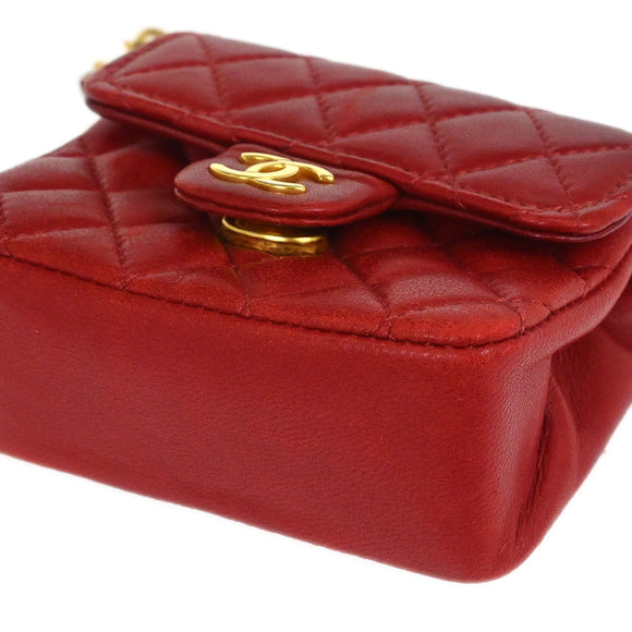 Chanel Red Lambskin Classic Flap Micro Bum Belt Bag