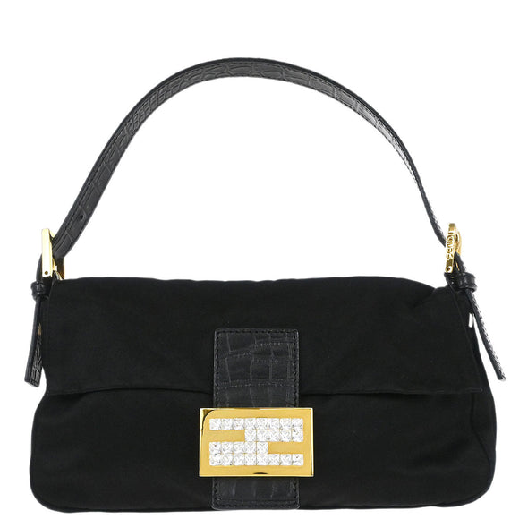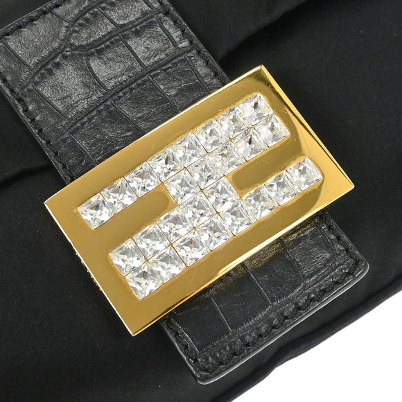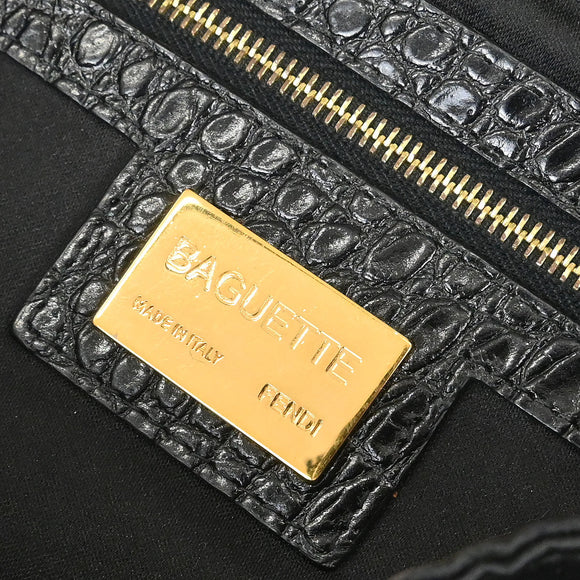 Fendi * Black Satin Crocodile Baguette Handbag