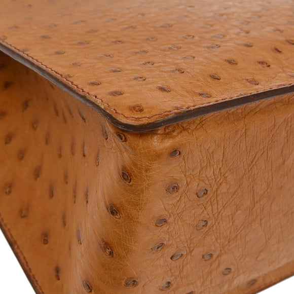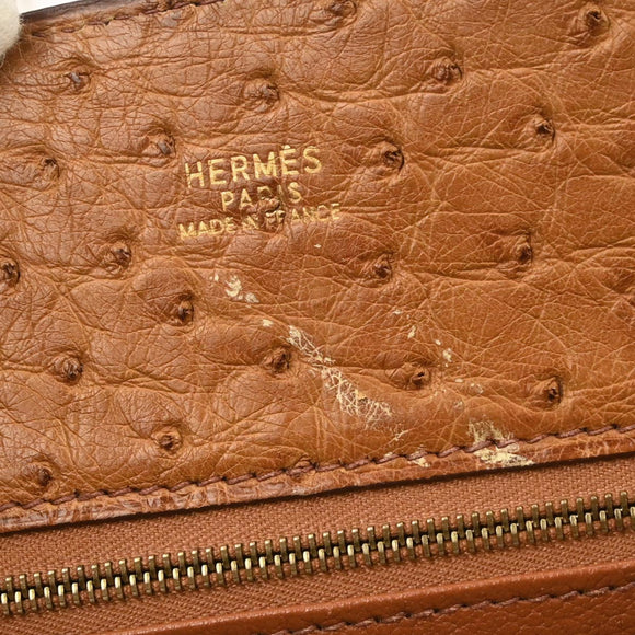 Hermes * Chestnut Ostrich White Bus PM Tote Bag