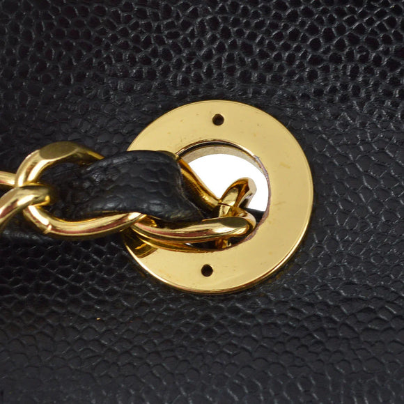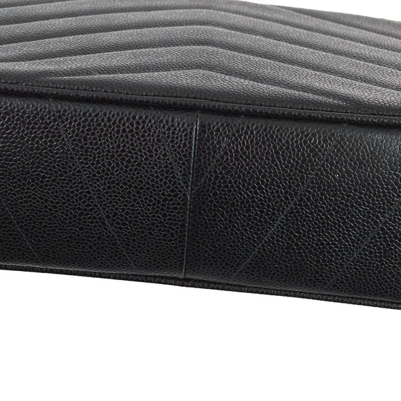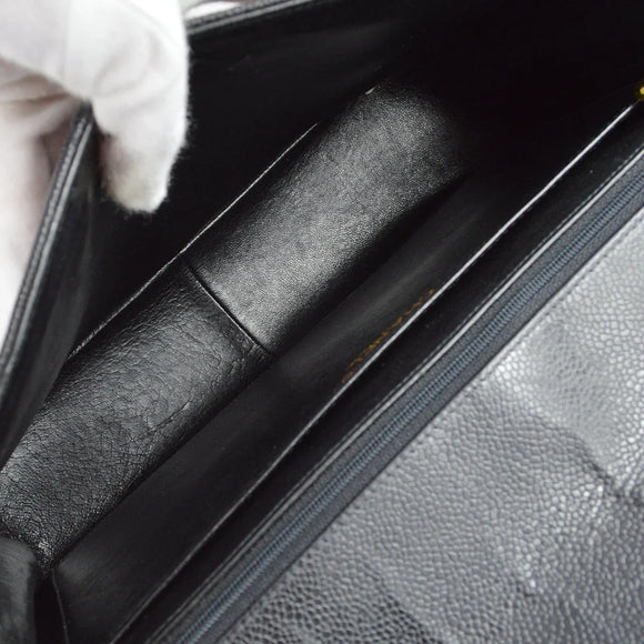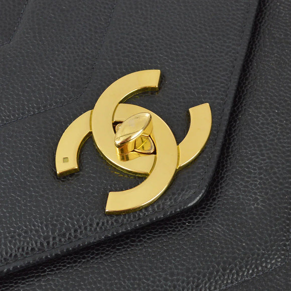 Chanel 1994-1996 Black Caviar Jumbo Chevron Letter Flap Bag