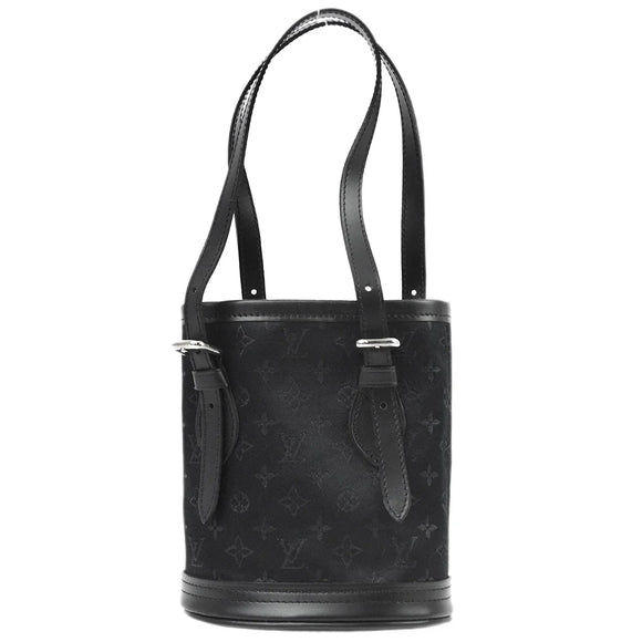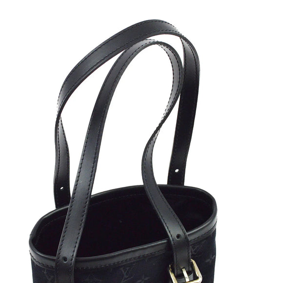 Louis Vuitton 2001 Black Monogram Satin Little Bucket Handbag M92144