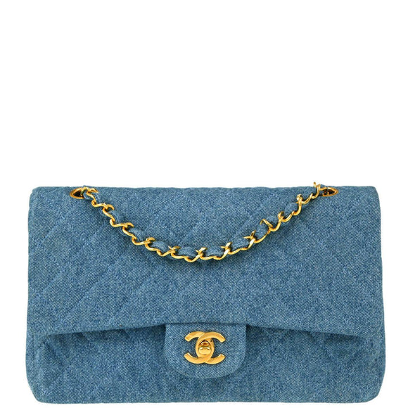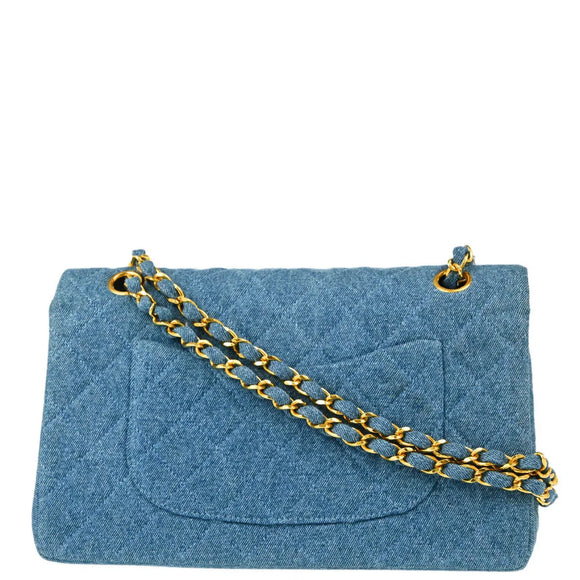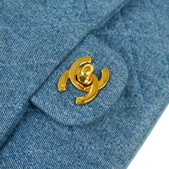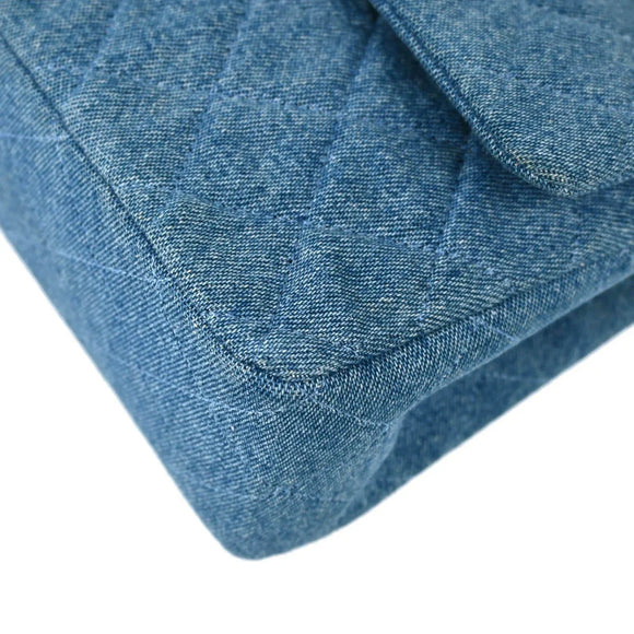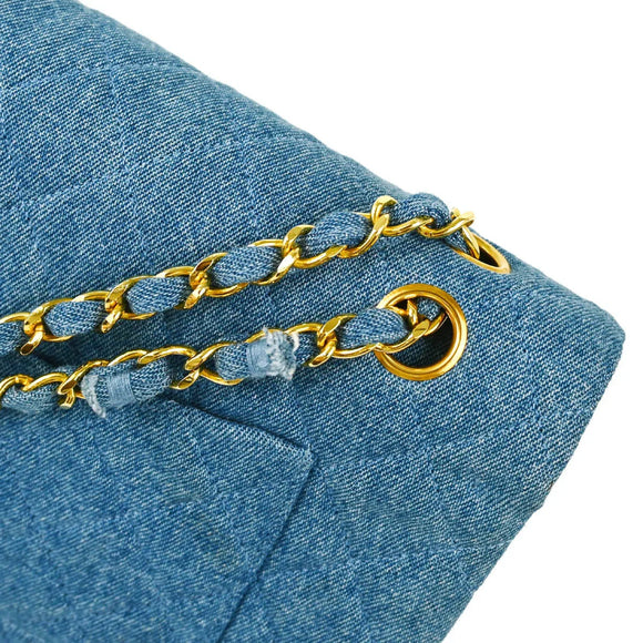 Chanel 1989-1991 Blue Denim Medium Classic Double Flap Shoulder Bag