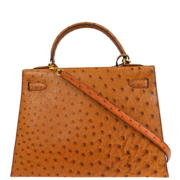 Hermes * 1999 Chestnuts Ostrich Kelly 32 Sellier Handbag