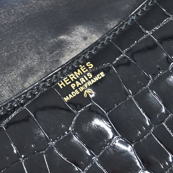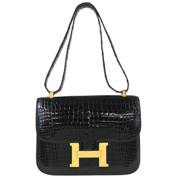 Hermes * 1988 Black Porosus crocodile Constance 23 Shoulder Bag