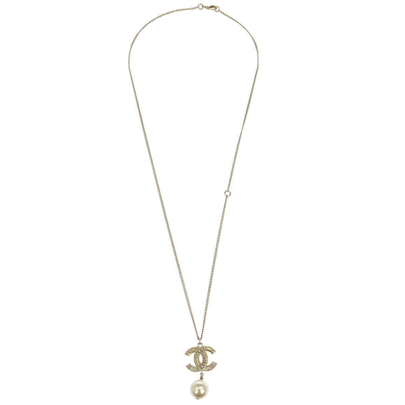 Chanel Chain Pendant Necklace Gold Costume Pearl B16P