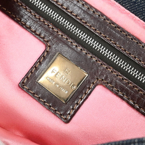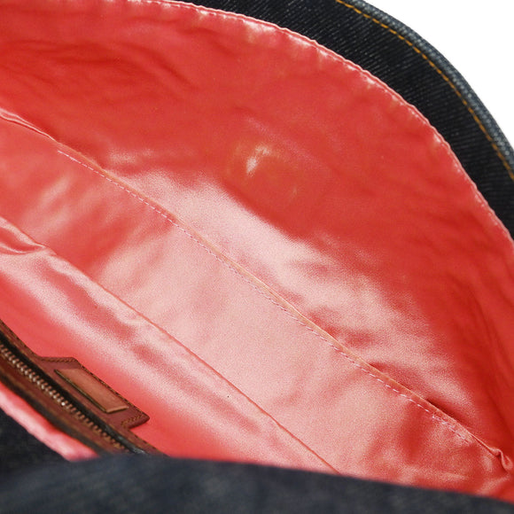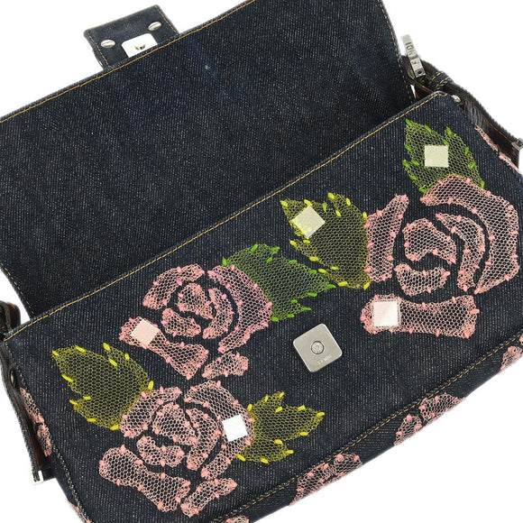 Fendi Navy Denim Floral Baguette Handbag