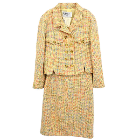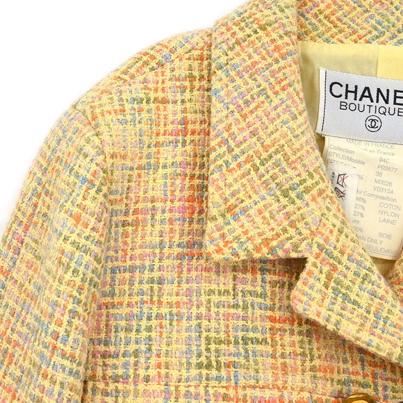 Chanel 1994 Setup Suit Jacket Skirt Tweed Yellow #38
