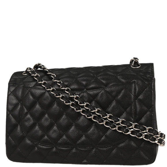 Chanel 2011 Black Caviar Jumbo Classic Double Flap Shoulder Bag