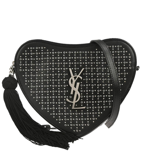 Saint Laurent Black Leather Love Heart Shoulder Bag