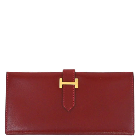 Hermes Rouge H Box Calf Bearn Bifold Long Wallet