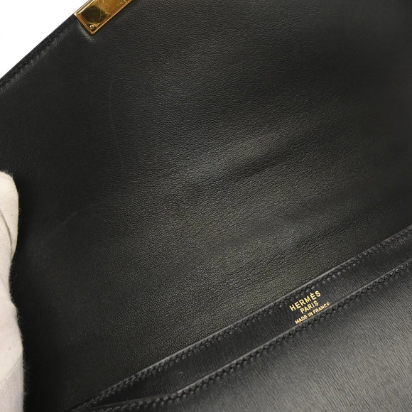 Hermes Black Box Calf Cadena Lock Shoulder Bag