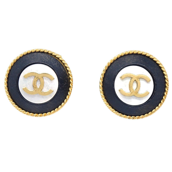 Chanel Costume Pearl Button Clip-On Earrings Gold 94P