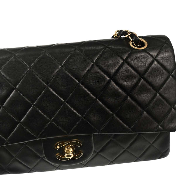 Chanel 1996-1997 Black Lambskin Medium Classic Double Flap Shoulder Bag
