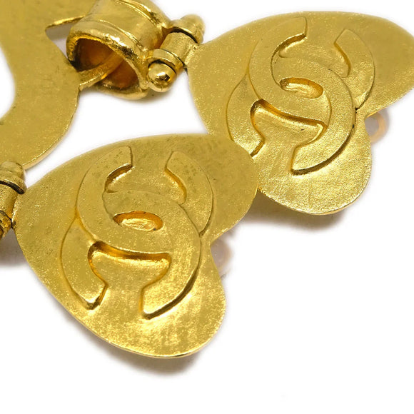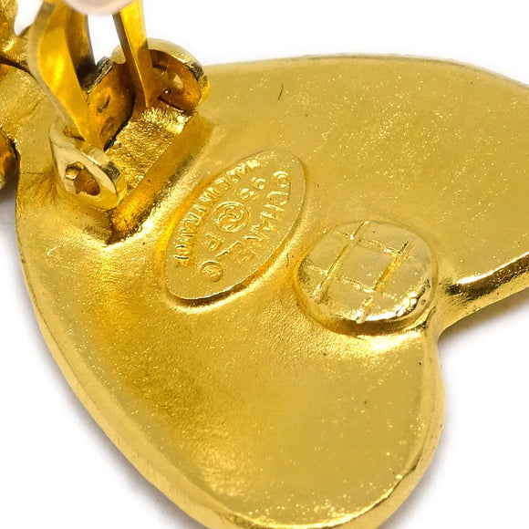 Chanel Heart Dangle Earrings Gold Clip-On 95P