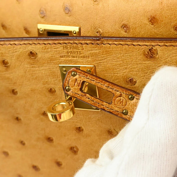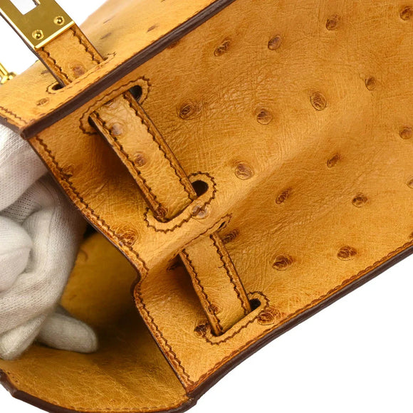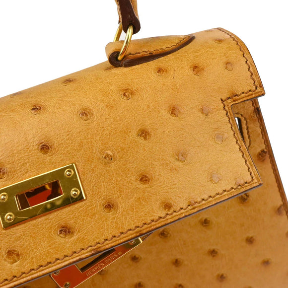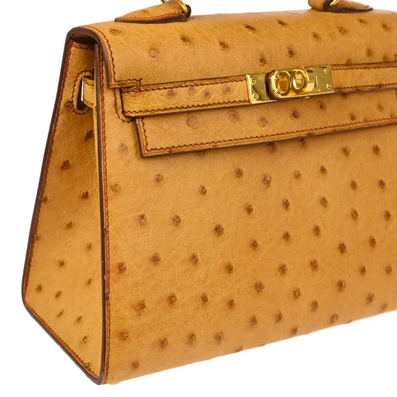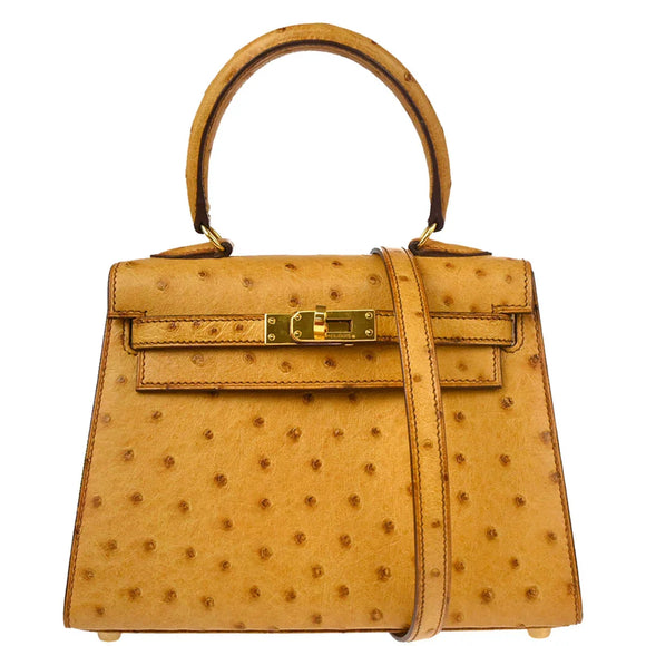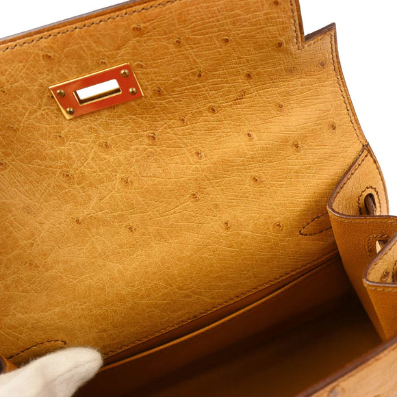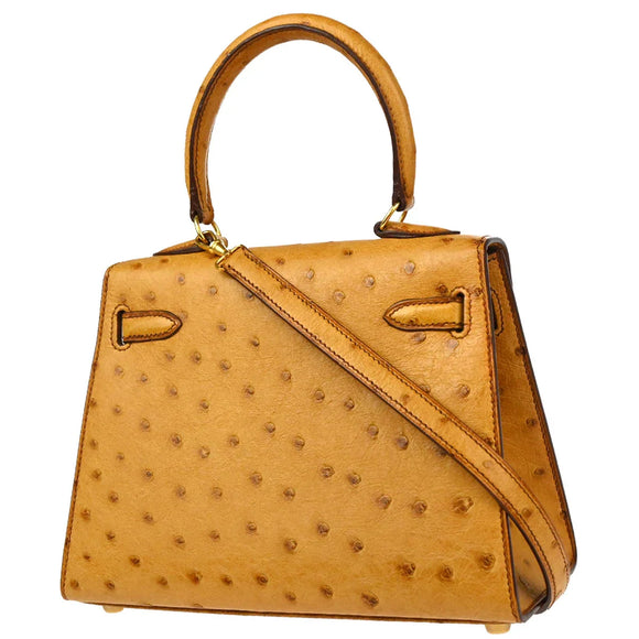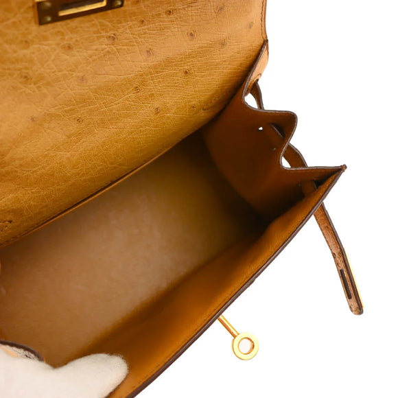 Hermes * 1993 Chestnut Ostrich Mini Kelly 20 2way Handbag