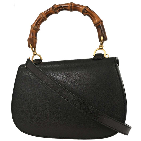 Gucci Black Pigskin Bamboo 2way Shoulder Handbag