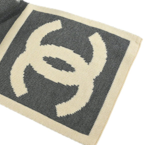 Chanel Sport Line Scarf Shawl Muffler White Gray Small Good