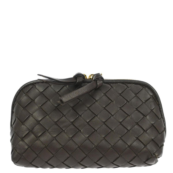 Bottega Veneta Brown Lambskin Intrecciato Pouch