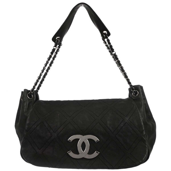 Chanel Black Calfskin Accordion Flap Bag Handbag