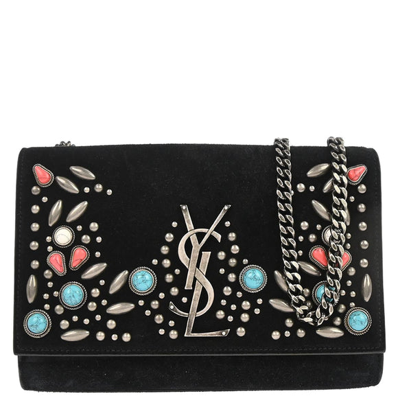 Saint Laurent Black Suede Small Kate Studded Shoulder Bag